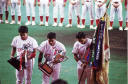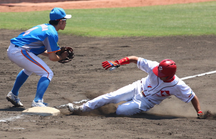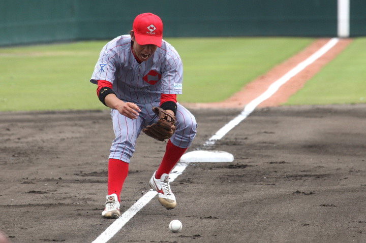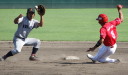 | 先日に続いて初回に4得点し先制、先頭打者佐々木正のセンター前ヒットから二死一、三塁のチャンス、相手エラー1点、 DH阿加多のセンターオーバー二塁打で2点追加、岩下センター前で4点目。3.6.8回にも小刻みに追加点。 先発佐川、リリーフ清水の必勝パターンで完投勝ちし準決勝戦へ。 |