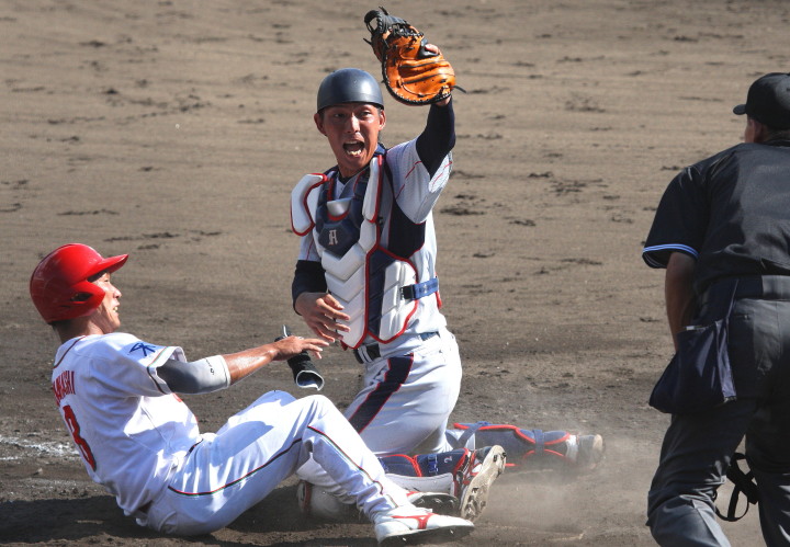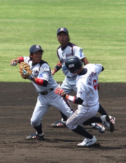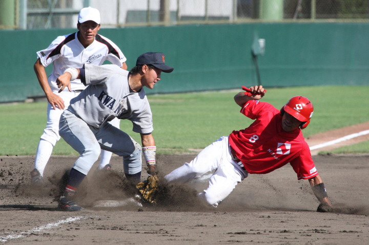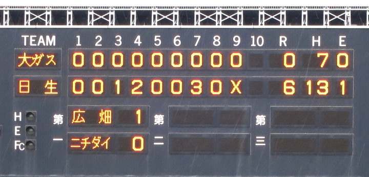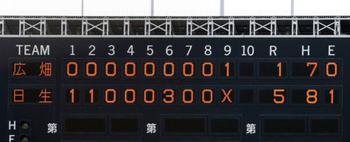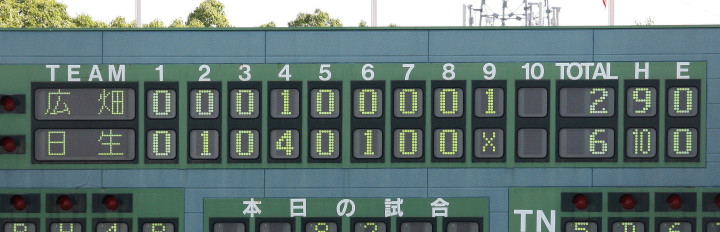 | 日生・初回1番小田のヒットと3番高橋のタイムリー左中間2ベースで先制、2回7番廣本がレフトスタンドへHR、 6回タイムリーヒットとWP、儀飛などでダメ押しの3得点。満を持して先発した吉原が最終回の1失点のみで完投勝利。 |