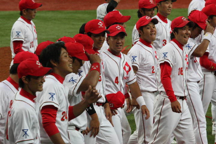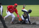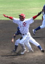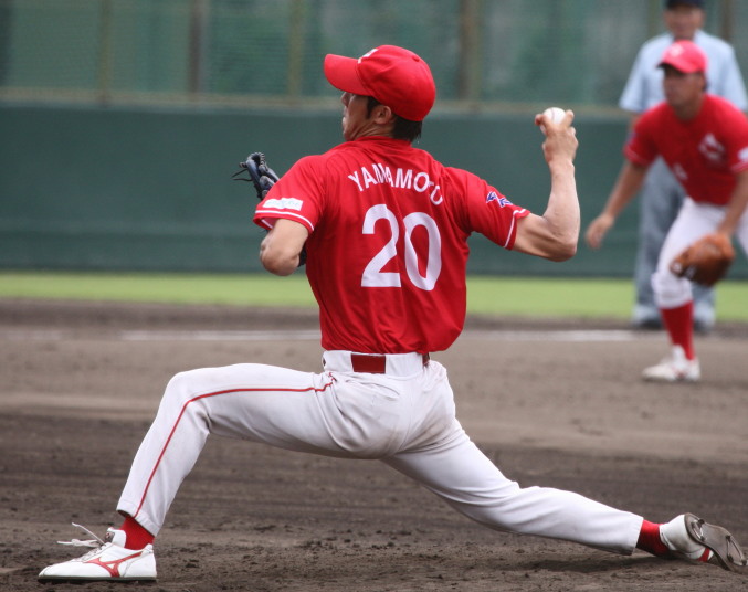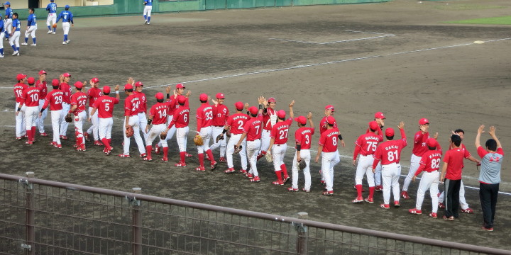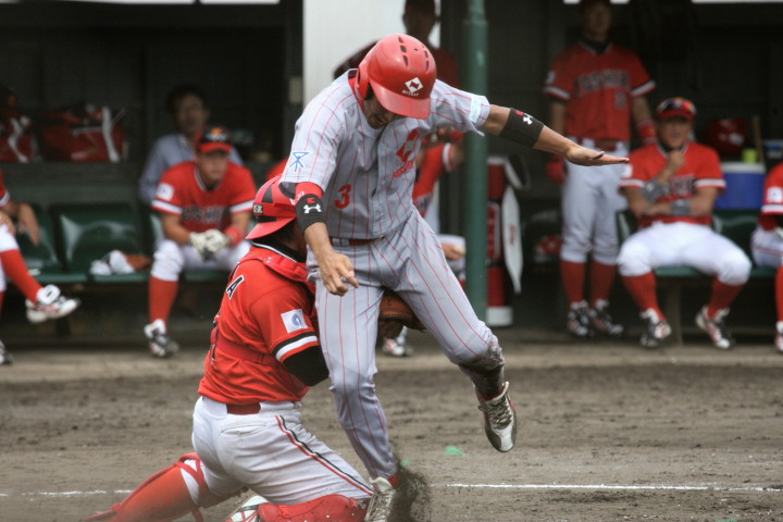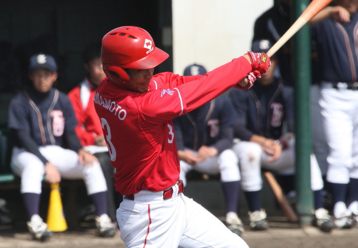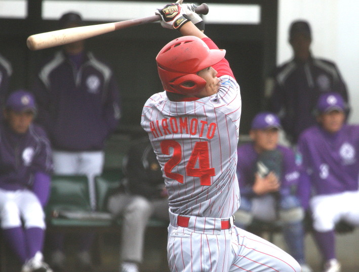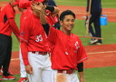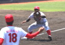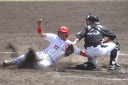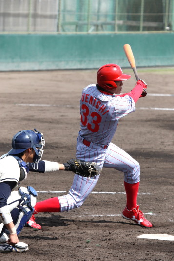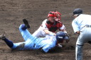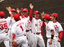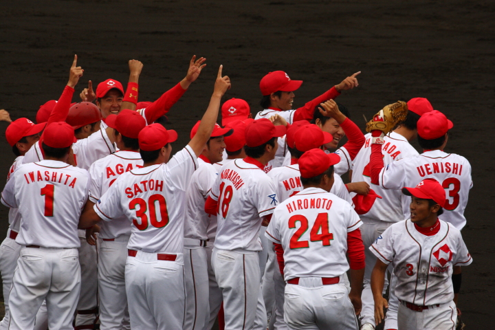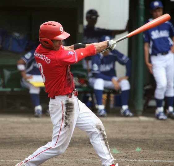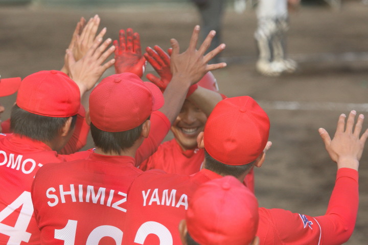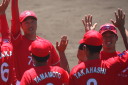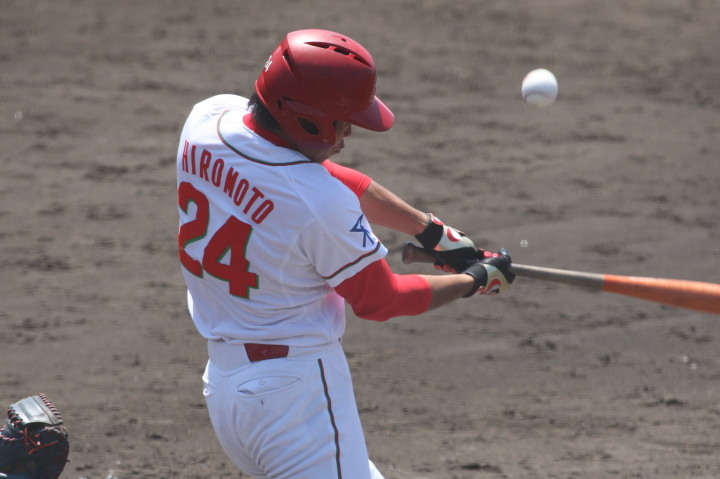 先発・山本は5回連打で失点したが、その後は2点のリードを守って粘り強く完投。 3点を先取された5回裏1アウト満塁からタイムリーと相手のWPなどで逆転。 6回には廣本の右中間ソロHRで貴重な追加点。 |