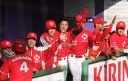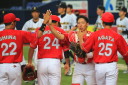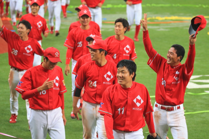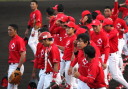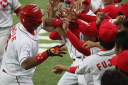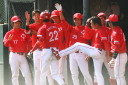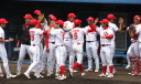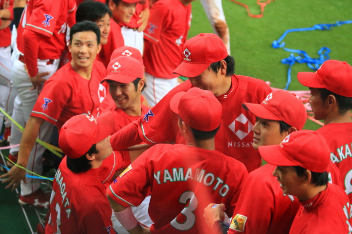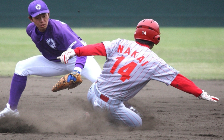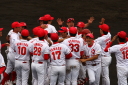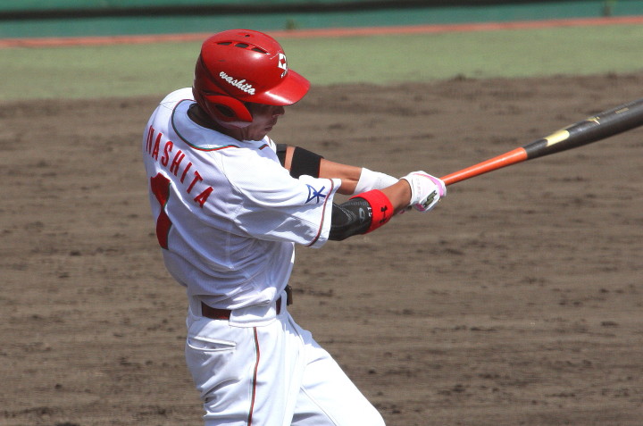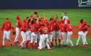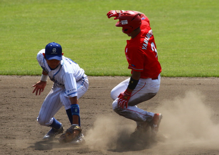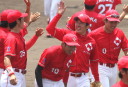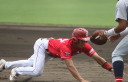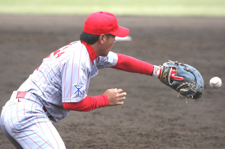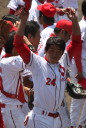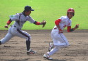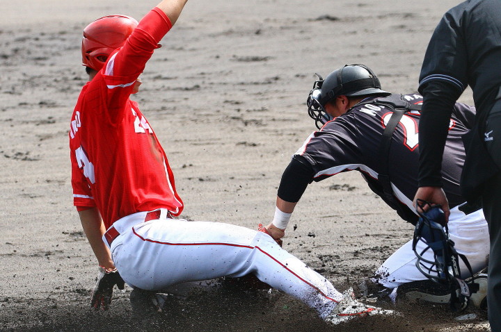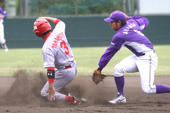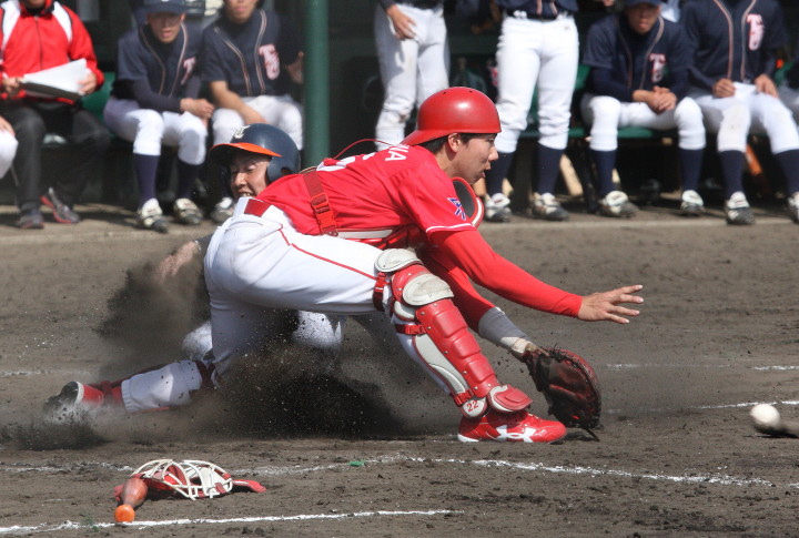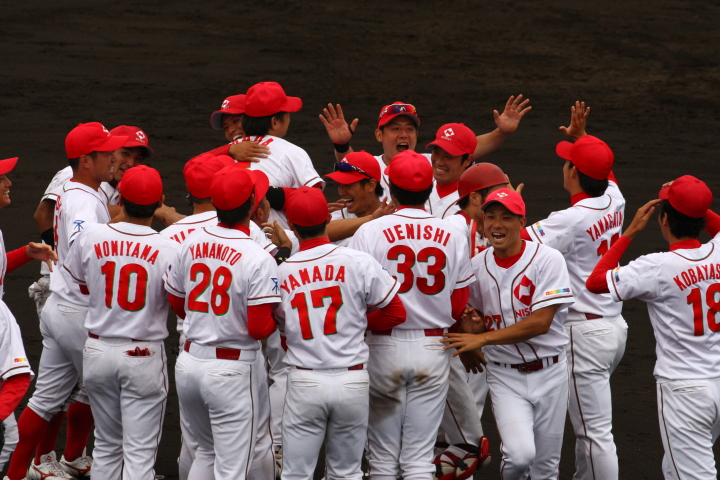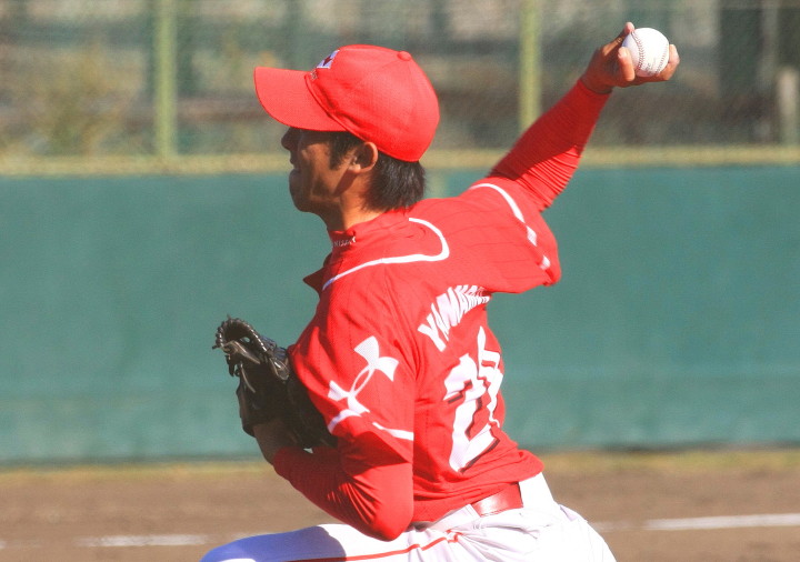 先発・山本は5回連打で失点したが、その後は2点のリードを守って粘り強く完投。 3点を先取された5回裏1アウト満塁からタイムリーと相手のWPなどで逆転。 6回には廣本の右中間ソロHRで貴重な追加点。 |