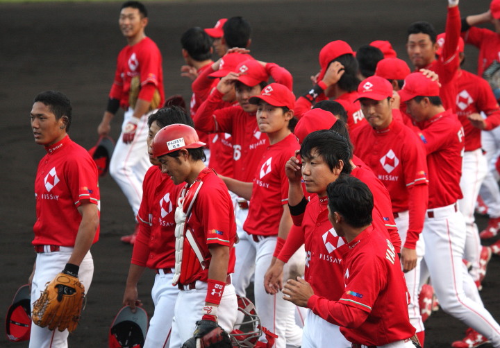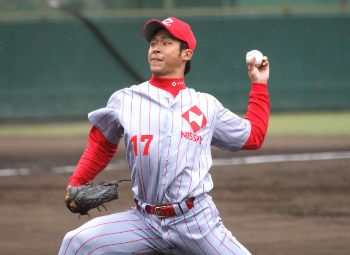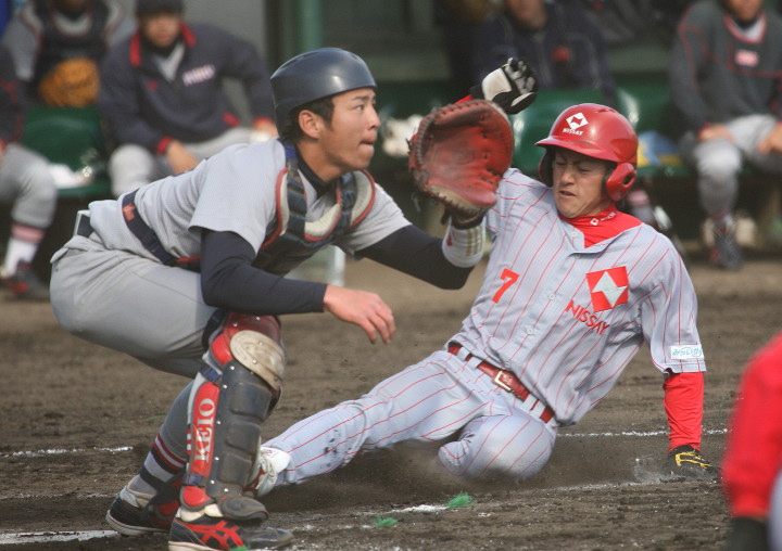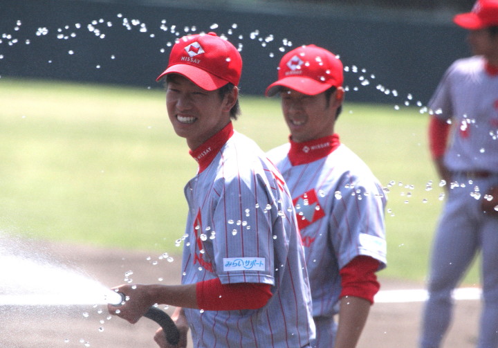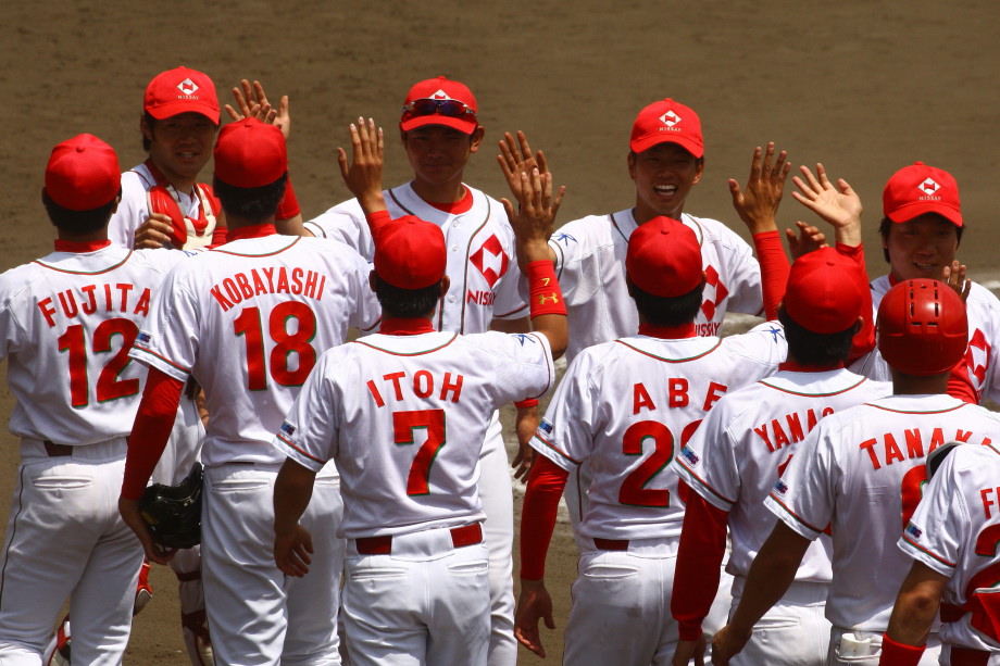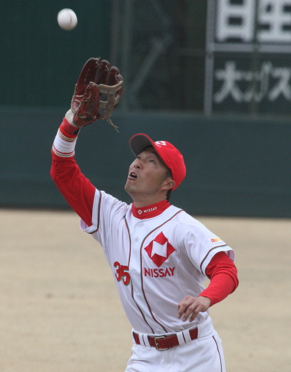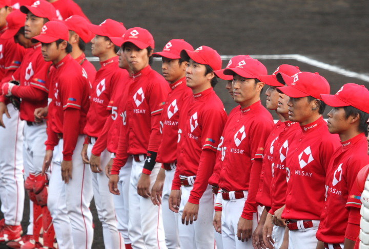 | 大阪地元での大会でもあり〜”頂点“を目指す〜ニッセイは幸先よく初戦突破。 先発柿田が7安打1失点とピリッとせず、5回途中から佐川が1安打3奪三振と好救援、 藤田がワンポイント登板、その後吉原が締める。 打線はオープン戦からの好調を維持し、小林が2本のタイムリー・廣本3安打・井上も2安打。 終始安定したゲーム運びで2回戦へ進んだ。 |