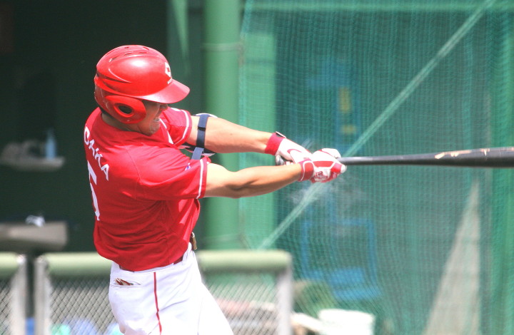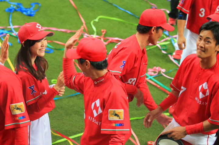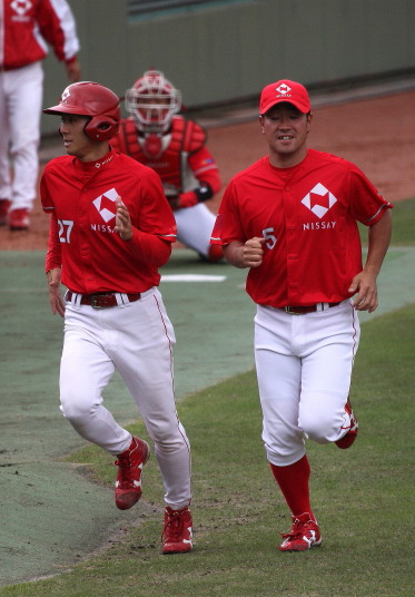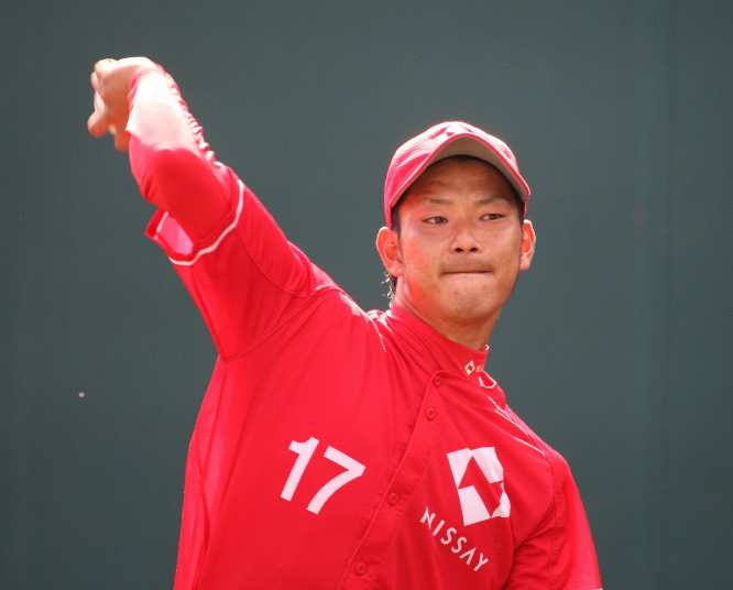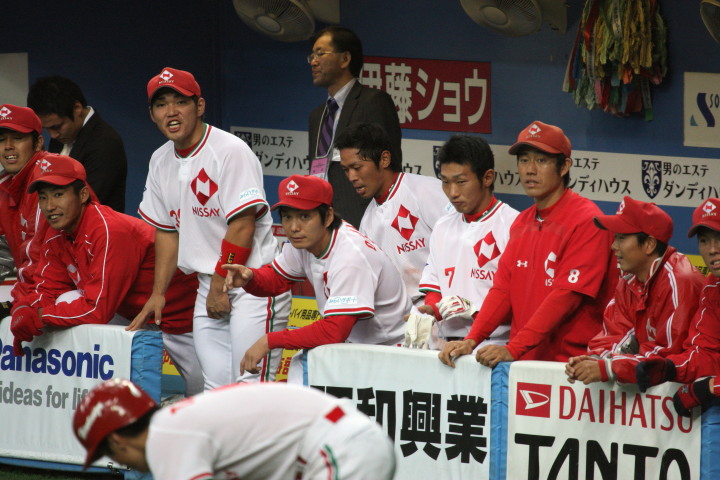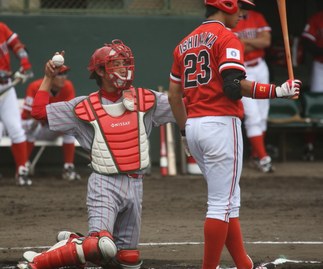 | 2時間半繰り上げてのプレーボール。日生の初回6点の猛攻は見られなかった。 2回裏・新人RF上西が豪快に右中間へソロHR。 7回裏・レギュラーを目指す1B宇高が追い込まれてからの変化球を左翼越えの3ラン。 先発・佐川は5回ピンチを迎えたが粘り強く後続を打ち取り5回を余裕の零封。 6.7回は新人山田もランナーを背負っても得点を許さず零封。 あとの2回は最も期待する新人清水が前評判通りの力を発揮。 |