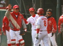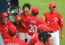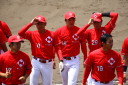| 山形、阿部、小林は8回を無失点の順調な仕上がり。 ベテラン高橋が二打席連続右左へホームラン、やっとケガも完治した勝負の二年目を迎える 上西も高い放物線を描いてレフトオーバーの3点ホームラン。 |