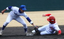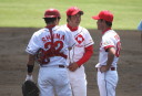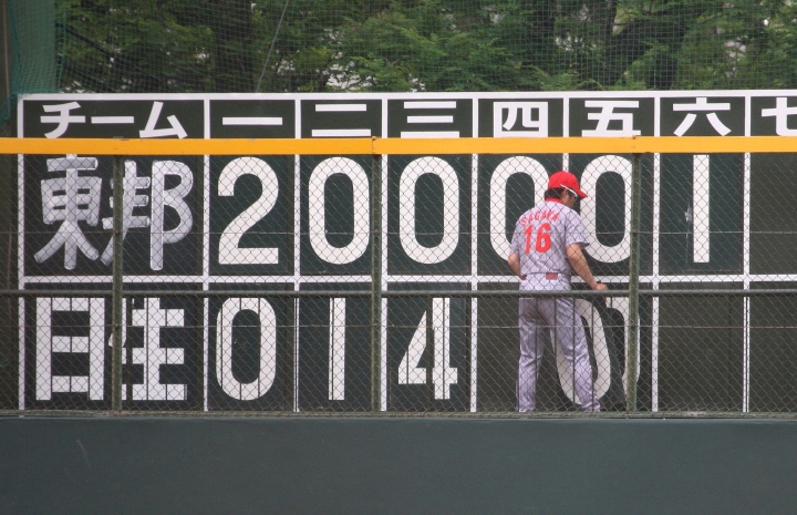 | 先発清水が5回1/を2失点と好投したが今日はコントロールに本来の精度が無かった。 リリーフの平賀も痛打され5点目を献上。続く藤田、山脇、山形は無難に好投。 後半原田、小田のタイムリーで追撃したが及ばず惜敗。 |