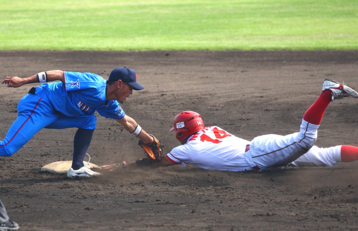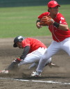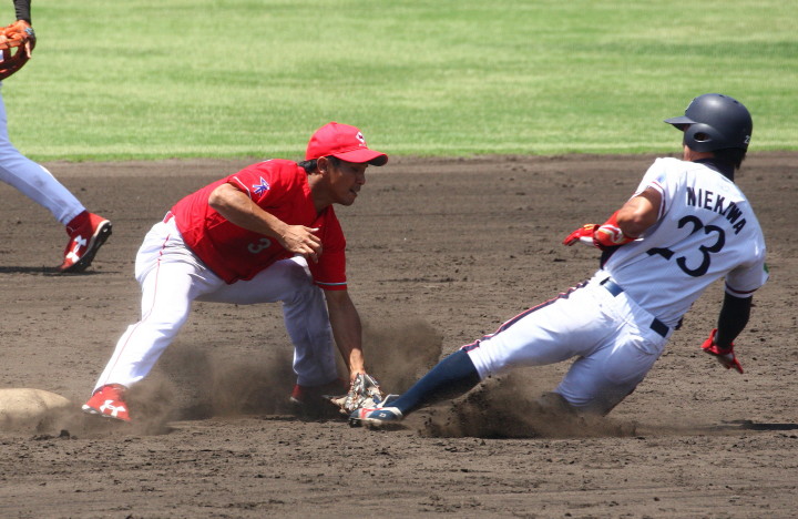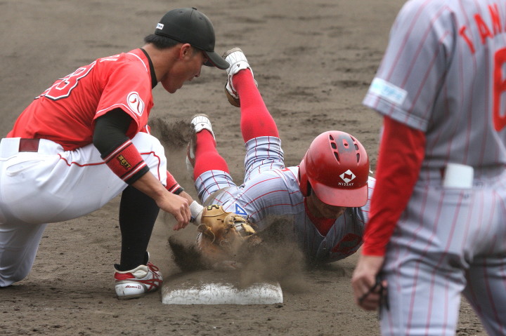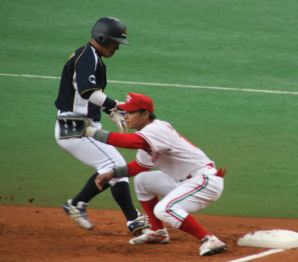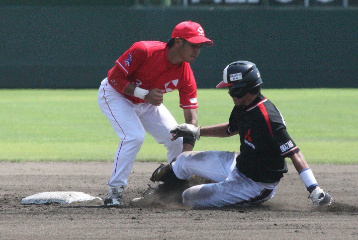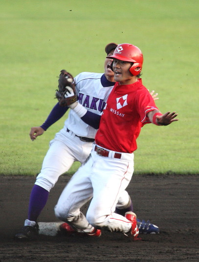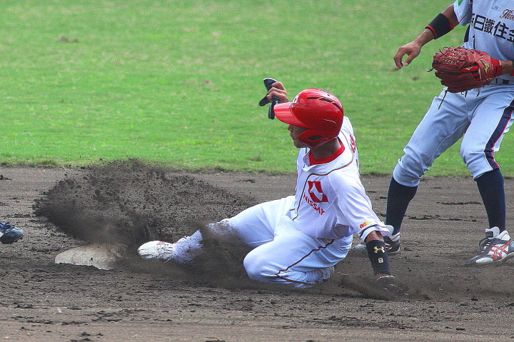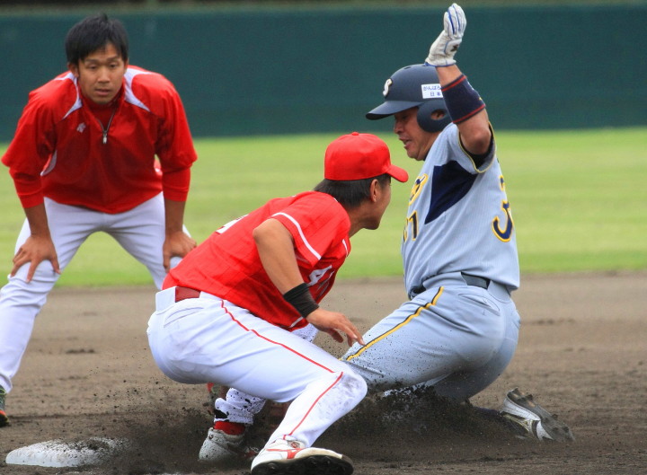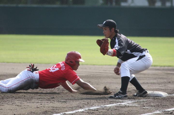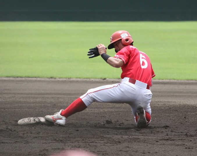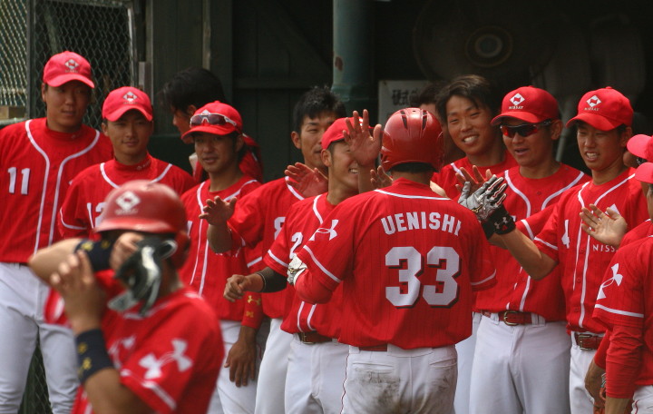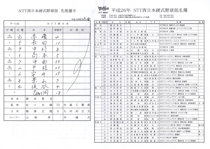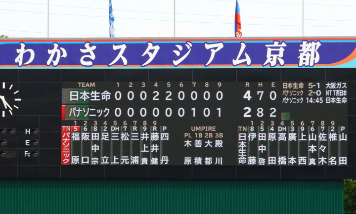 | 5回裏二塁打の9番3B中井を置いて2番SS田中啓がタイムリー二塁打、これが唯一の得点になった。 JABA京都大会リーグ戦第2戦目に当たるチームに勝利した事は幸先が良い。 |