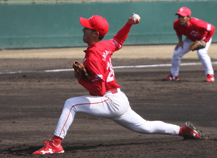 | 今シーズン期待される新人小林が先発、4回3安打3失点。 リリーフした清水も2回1安打のみだったが四死球が絡んで1失点。 三番手は新人阿部、1安打1奪三振で1回を零封。 関東遠征OP戦に続き二度目の登板になった佐川、公式戦へ向かって調整中。 8回の途中から登板の藤井は2安打1奪三振で零封。 |