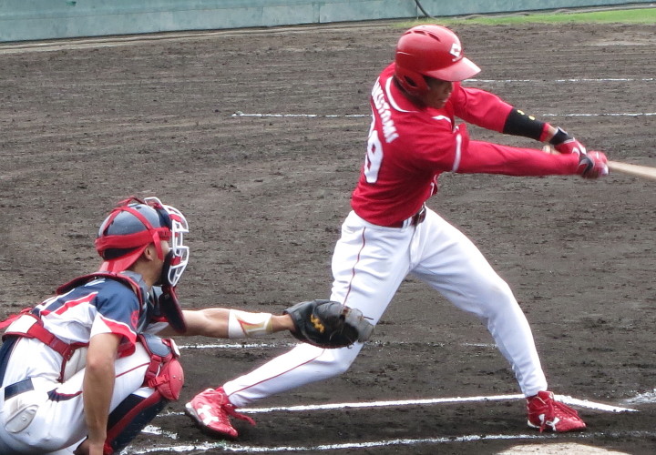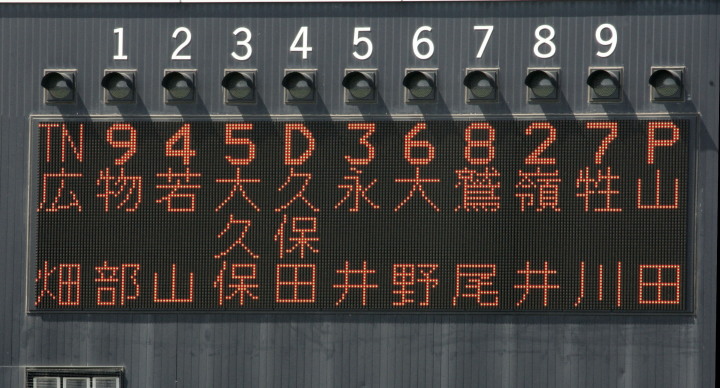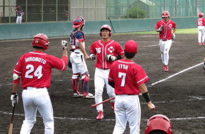 | スタメンに起用されたSS籾山が逆転3ラン、LF佐々木優介が1安打1得点、途中1Bへ入った宇高も左中間へ 打点付きスリーベース、新谷の死球で守備に入ったC平野がレフト前ヒットと活躍、新風を吹き込んだ。 |