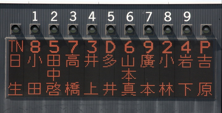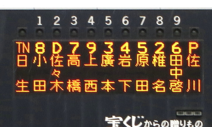| 久し振りに日生の実戦を観る。オーダーだが今後はメンバー表の通りかなり組み替えて選手権予選に臨むようだ。 1.2番を原田、福富、クリーンアップは山本真、高橋、廣本、これまで1番を打っていた小田をこのところ9番に起用、 唯 長距離砲として期待している上西をどこにはめ込むのか今後の課題ではある。 いずれにしても新オーダーが機能し始め、チームの活性化が見られるようになってきた感じた。 |
