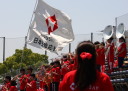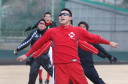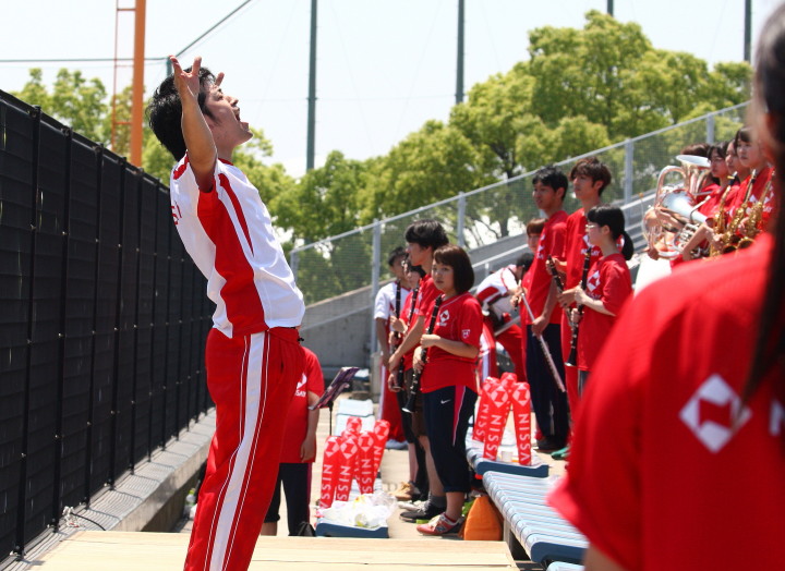 | 今年はじめてグランドへ。3人の新人も参加、あとの2人は明日かららしい。 今年のスローガンは 「TOP 〜想いを一つに〜」 |