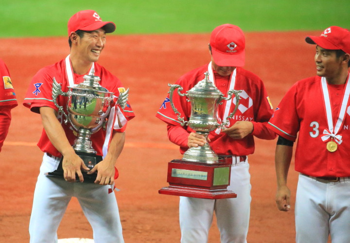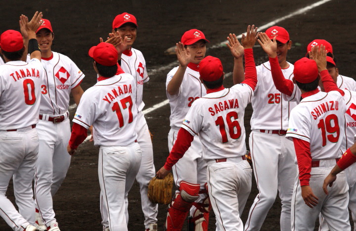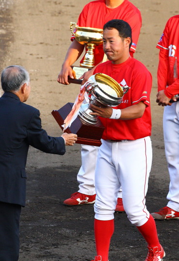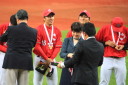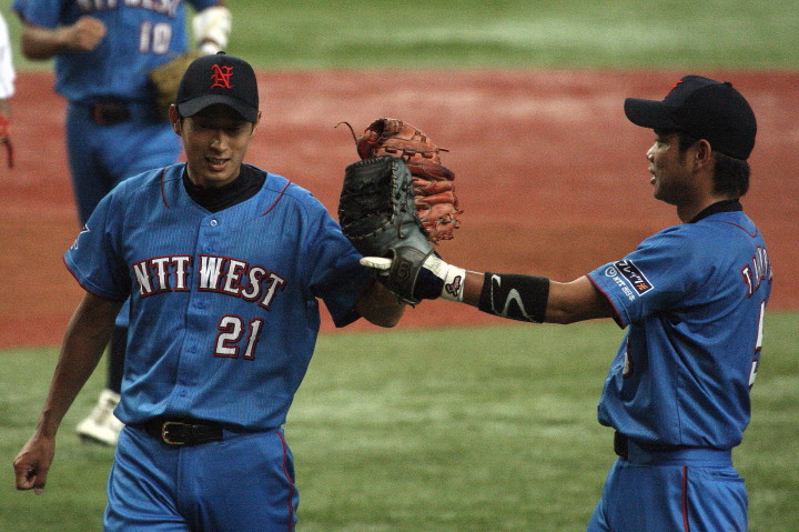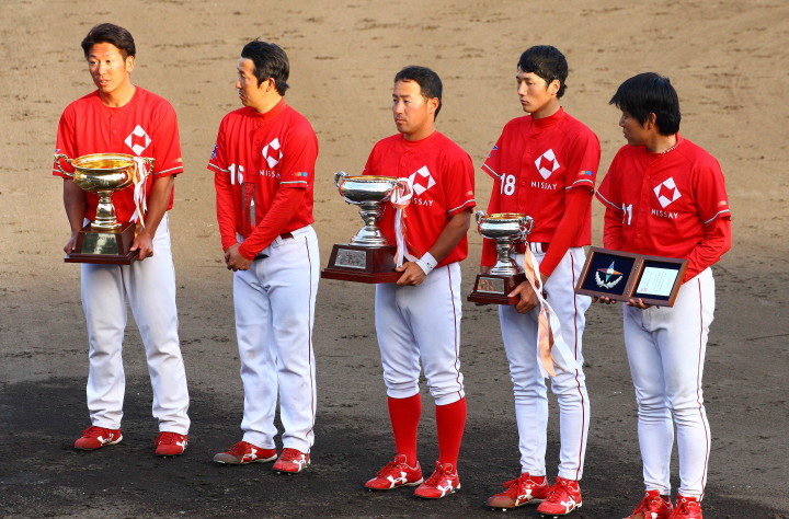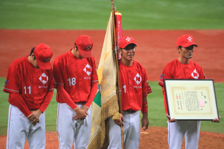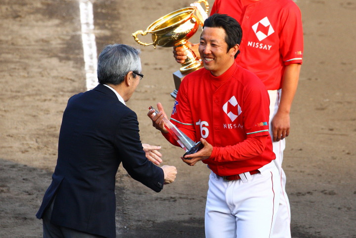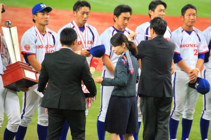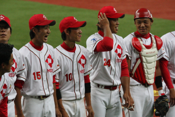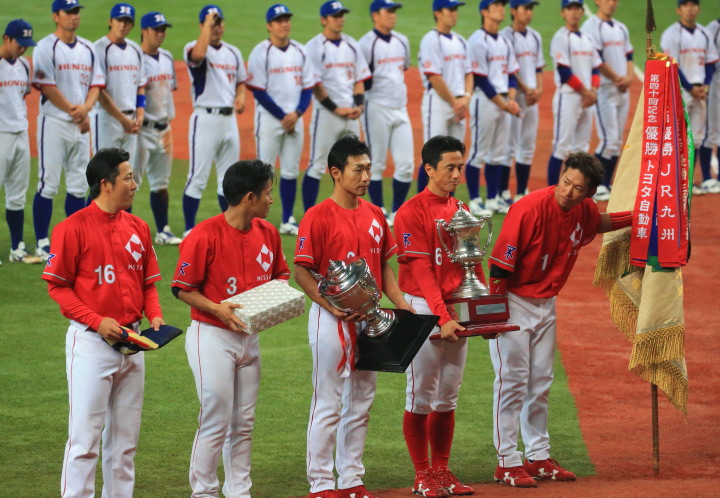 | 日本生命・12年振り2度目の優勝 !! 日生は初回竹間の2点タイムリーなどで3点先取、3回には天野の二塁打で加点。 先発・佐藤が好投、クローザーは土井が盤石。ホンダを4安打1失点に抑え快勝。 最高殊勲選手・佐藤充投手、打撃賞・竹間容祐外野手。 優秀選手賞・佐藤、土井両投手、鷲北剛捕手、下野敦司三塁手、竹間容祐中堅手、大宅敦司DHの6人が選ばれた。 |