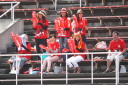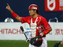 | 選手の皆さんも大変だが、スタンドの我々も同様に汗まみれ !! 佐川先発と聞いて自分は成程と納得、その期待に応えて力投・難敵を相手に9回を1失点の完投勝利。 新人・3B原田が満塁の走者を一掃する貴重な二塁打を放つてガッツポーズ。 |