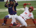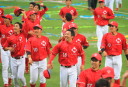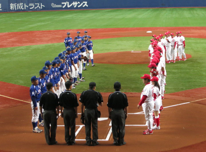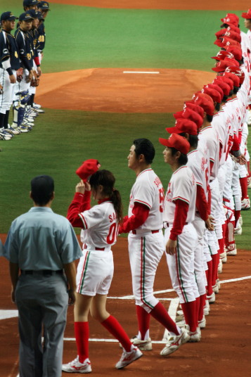 本戦を控えたチームの調整もありクラブチーム相手とのオープン戦が急遽組まれた。 1回裏井上の3ラン、山本2ラン、小林のソロと3本のHRで一挙6点、3回にも多井がソロHR。 5回は4本のタイムリーで又6得点。ドラフト中継を観損じる訳にいかないし、 時々雨が吹き込んで来るので、いい潮時この辺りで引き上げてきた。 ☆ 今夜のドラフト、小林・柿田・吉原・井上の一人だけでも阪神に入って欲しかったなぁ〜 |