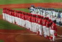 | 〜都市対抗出場チームの壮行試合〜 日生・佐川と東芝・野田の先発で始まる。4回裏日生の繋がる打線が爆発、5連打で一挙6得点。 5回から藤井・山本翔がリリーフ、大量得点もあって吉原・柿田を温存し余裕の勝利。 |