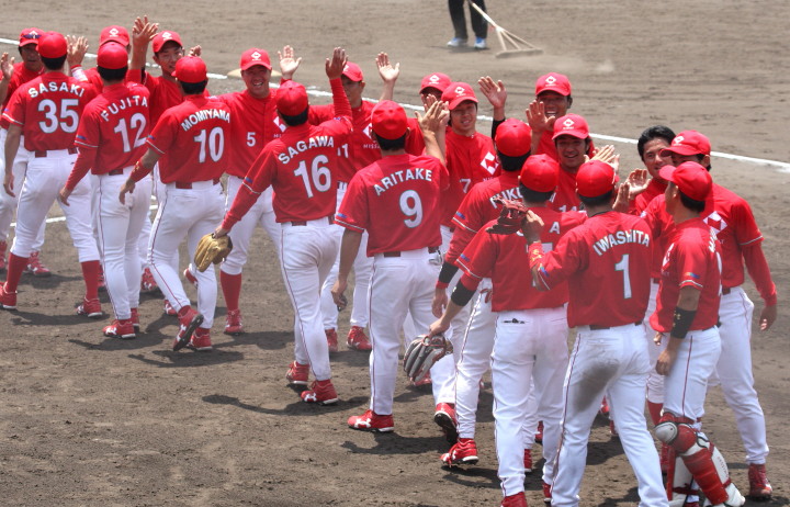 | 杉浦新監督が就任して初めての日本選手権大会で快進撃が始まった。 エース下敷領投手からクローザー土井投手への鉄壁リレーで快勝する。 |