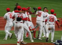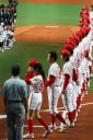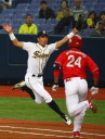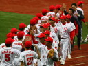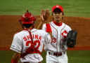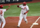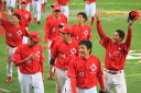 | 新人清水がランナーを背負っても粘って7回4安打零封。 9回裏1アウトから5番1B宇高が今日2本目のヒットからフルベースのチャンス、 8番LF田中勇が右中間を破ってサヨナラ勝ち。 |
