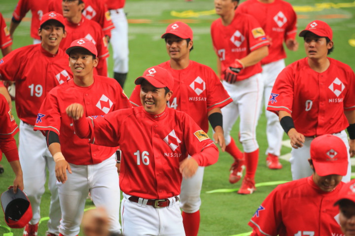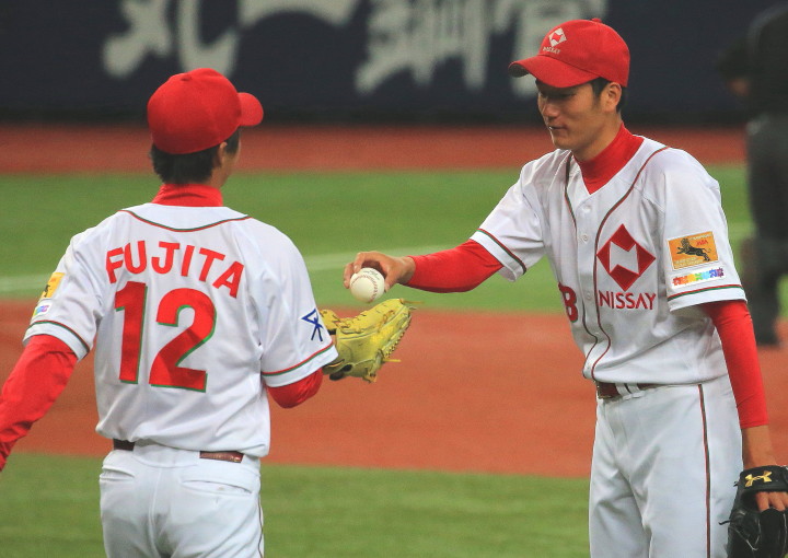 | 都市対抗出場壮行試合2戦目。 投手陣は藤井-藤田-佐川-山脇-山本翔-ポイランのリレー 。 唯一の得点は負傷癒えた、27佐々木優介がレフトオーバーのソロHR。 補強選手・47山田秋親投手(ミキハウス)、13中村駿介投手(日本新薬)、28福田泰平外野手(日本新薬)も合流。 |