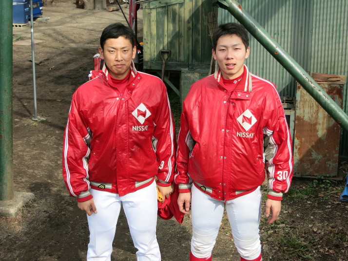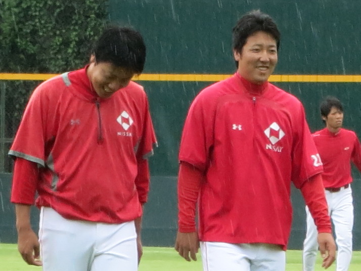 | 13 山形 ・ 26 古川 | 27 佐々木 ・7 伊藤 | 山本翔・清水・山田 | スタメン発表 | ブルペンの清水 |